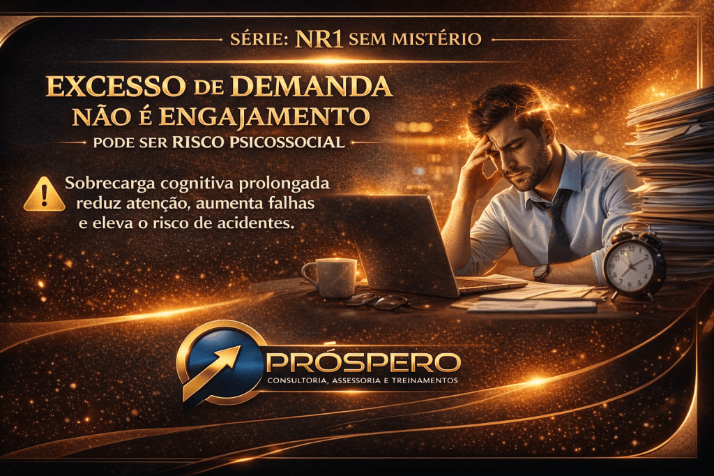 Quando a demanda se torna excessiva e constante, o que se instala não é um colaborador engajado, mas sim um cenário de grave risco psicossocial.