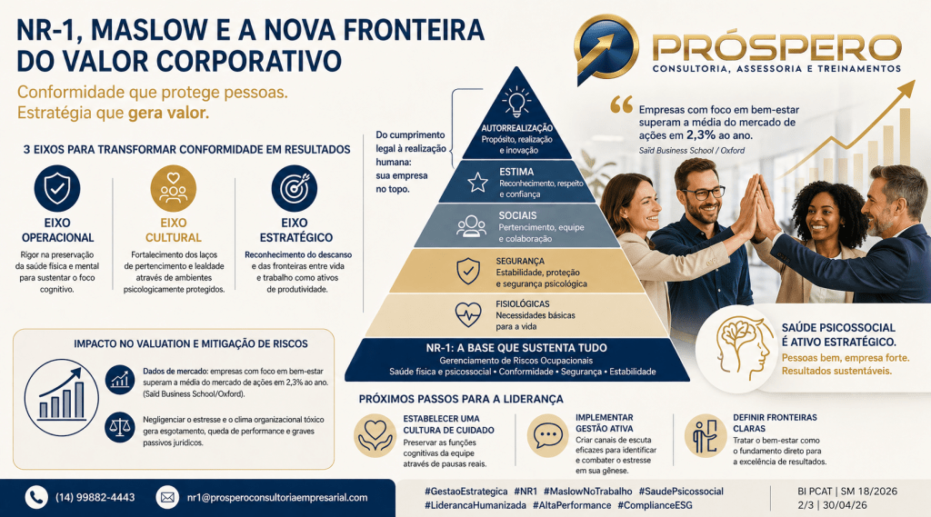 #GestaoEstrategica #NR1 #MaslowNoTrabalho #SaudePsicossocial #LiderancaHumanizada #AltaPerformance #ComplianceESG